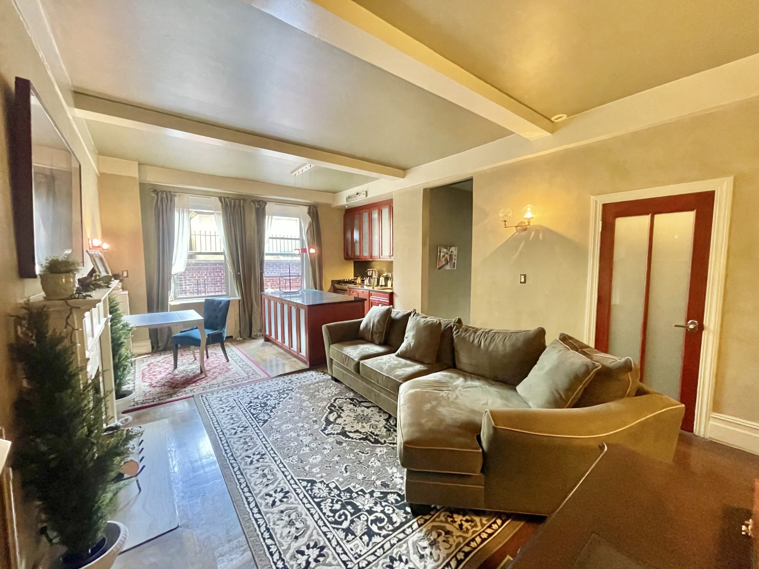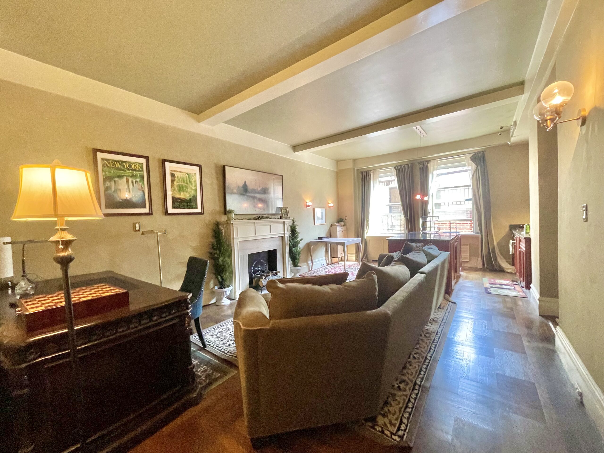 Step into this charming, sunlit corner one-bedroom that perfectly blends classic prewar charm with modern living. With high, beamed ceilings, sleek hardwood floors, and a decorative fireplace, this apartment is full of character. The traditional foyer leads you into an open-concept living and dining area that’s perfect for entertaining, complete with a chic island kitchen. The updated, windowed bathroom sits just off a short hallway, and beyond that, your bedroom awaits — offering breathtaking views of the Empire State Building and Park Avenue.